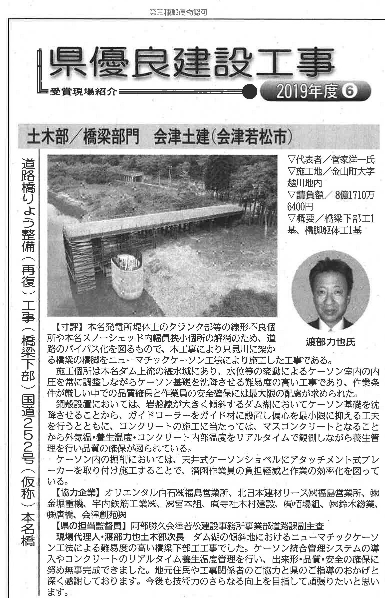 橋梁部門優良工事として、当社施工の「道路橋りょう整備(再復)工事(橋梁下部)」が福島県知事より、表彰されました。